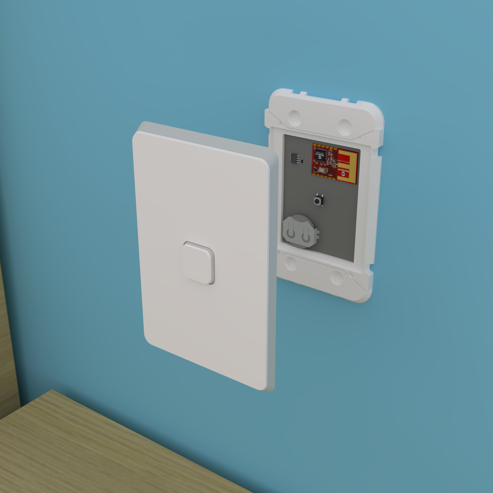 A kit containing a ready-to-mount wireless push-button switch that matches AU/NZ switch styles, and a mains powered receiver. Mount the switch anywhere without cutting into walls - no wiring needed at the switch location. Using long range RF technology, it works at distances over 300 meters.